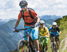 Mountainbiker wählen zwischen zahlreichen Mountinbikestrecken oder Parcours.