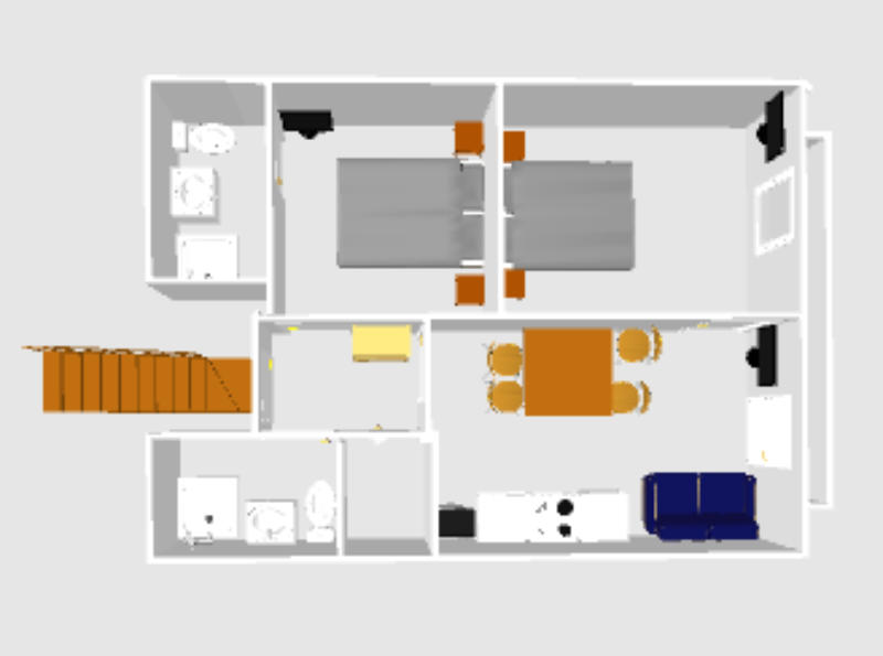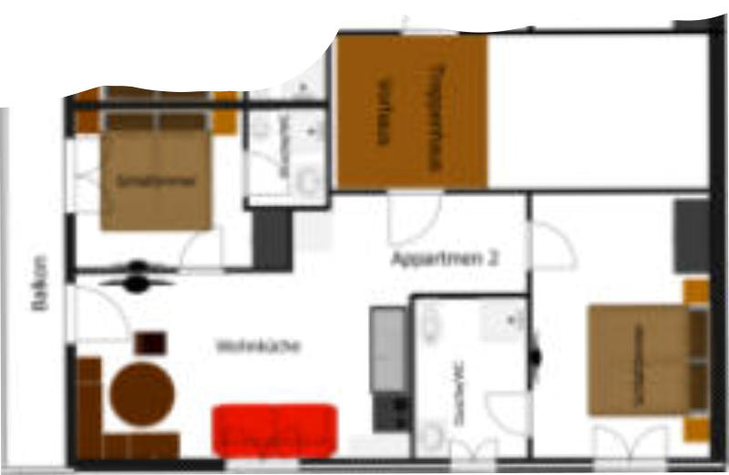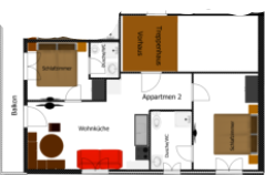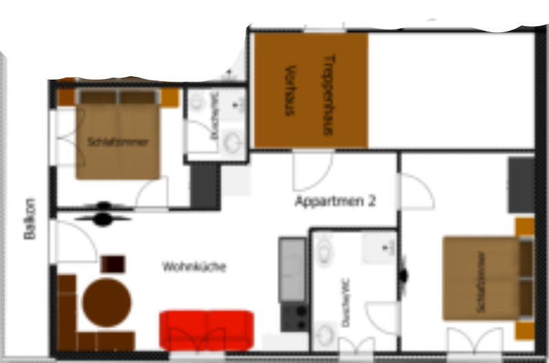 2 x Doppelzimmer mit Dusche/WC, Wohnküche mit